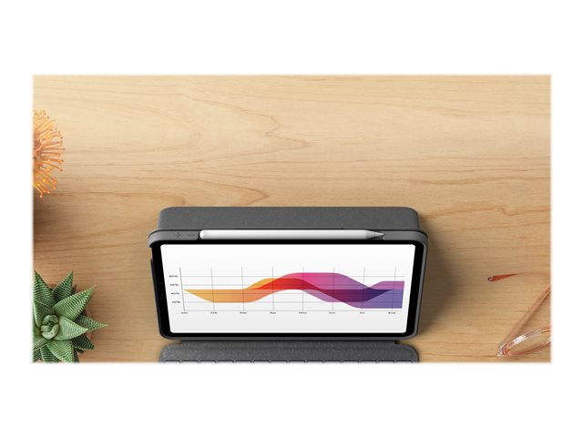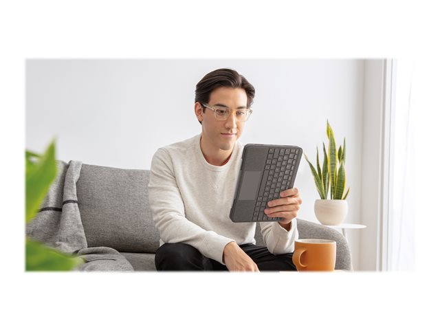 Logitech Folio Touch - Näppäimistö- ja kalvokotelo - sekä kosketuslevy - taustavalaisu - Apple Smart connector - QWERTY - Iso-Britannia - oxfordinharmaa malleihin Apple 10.9-inch iPad Air (4. sukupolvi, 5th generation)