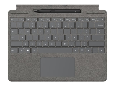 Microsoft Surface Pro Signature Keyboard - Näppäimistö - sekä kosketuslevy, kiihtyvyysmittari, Surface Slim Pen 2:n tallennus- ja latausalusta - Pohjoismaat - platina - kaupallinen - sekä Slim Pen 2 malleihin Surface Pro 8, Pro X