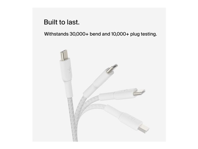 Belkin BoostCharge - USB-kaapeli - 24 pin USB-C (uros) to 24 pin USB-C (uros) - USB 2.0 - 3 A - 1 m - USB Power Delivery (60W) - valkoinen (pakkaus sisältää 2)