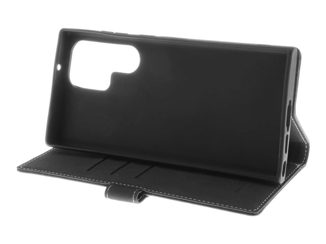 Insmat Exclusive - Läppäkansi matkapuhelimelle - aito nahka, paperi, polyuretaani, pahvi, puuvilla, alumiinifolio, pronssi, termoplastinen polyuretaani (TPU) - musta malleihin Samsung Galaxy S23 Ultra 650-3137