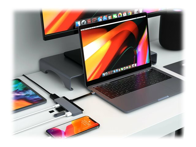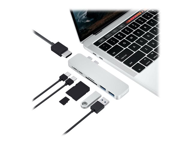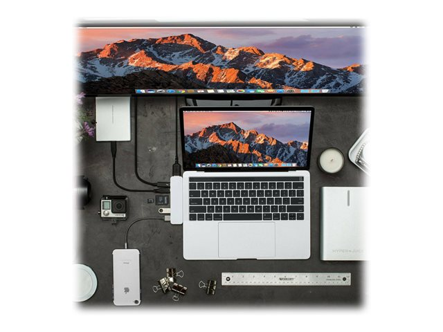 HyperDrive Duo 7-in-2 Hub - Telakointiasema - USB-C x 2 - HDMI HD28C-SILVER